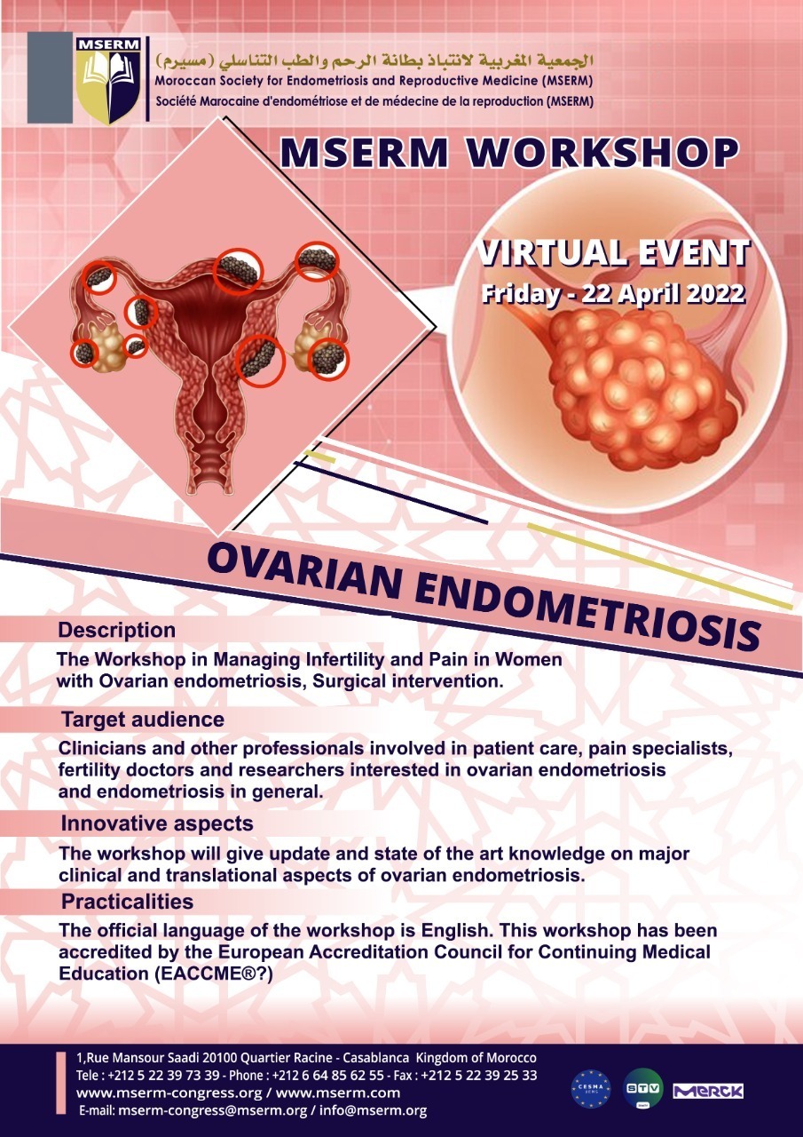 MSERM workshop – Virtual event – Ovarian Endometriosis – Friday – 22 April 2022 Description:The Workshop in Managing Infertility and Pain in Women with Ovarian endometriosis, Surgical intervention. Target audience:Clinicians and other professionals involved in patient care, pain specialists, fertility doctors and Read More